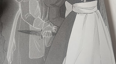 Laia López se pone hoy un poco turbia para traernos una ilustración de una maid tétrica del siglo I, ¿a quién no le va a gustar? La vemos con su uniforme impoluto pero oh no, el reflejo del espejo... Ni si uniforme está impoluto, ni viene de limpiar la plata ¡Claramente viene de hacer tostadas de mantequilla y mermelada! ¡Su cuchillo lo demuestra! ¡¡Que alguien detenga a esa loca!!